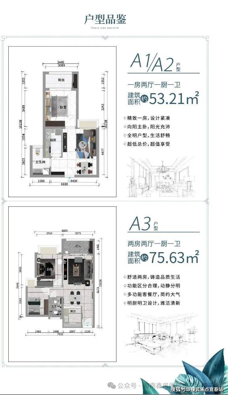 【在售户型】:1#2# 约 53-75㎡ 一房两房