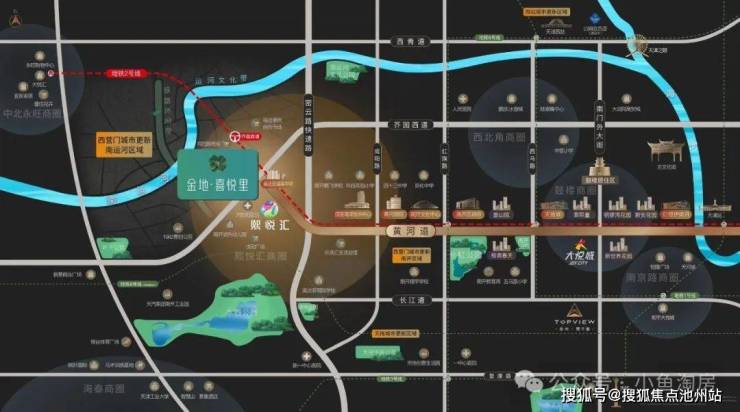 从东向西,从古至今,从老城厢到广开,再到南运河区域,城市沿着黄河道这条轴线向西生长,孕育出不同时代的城市经典,最终由金地·喜悦里开启生活的焕新迭代。