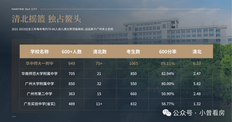 1、引入华中师大教育集团办学,学校连续六年排名全国第一,清北摇篮 (广州第一的华师附仅排名第十五),近100%一本升学率