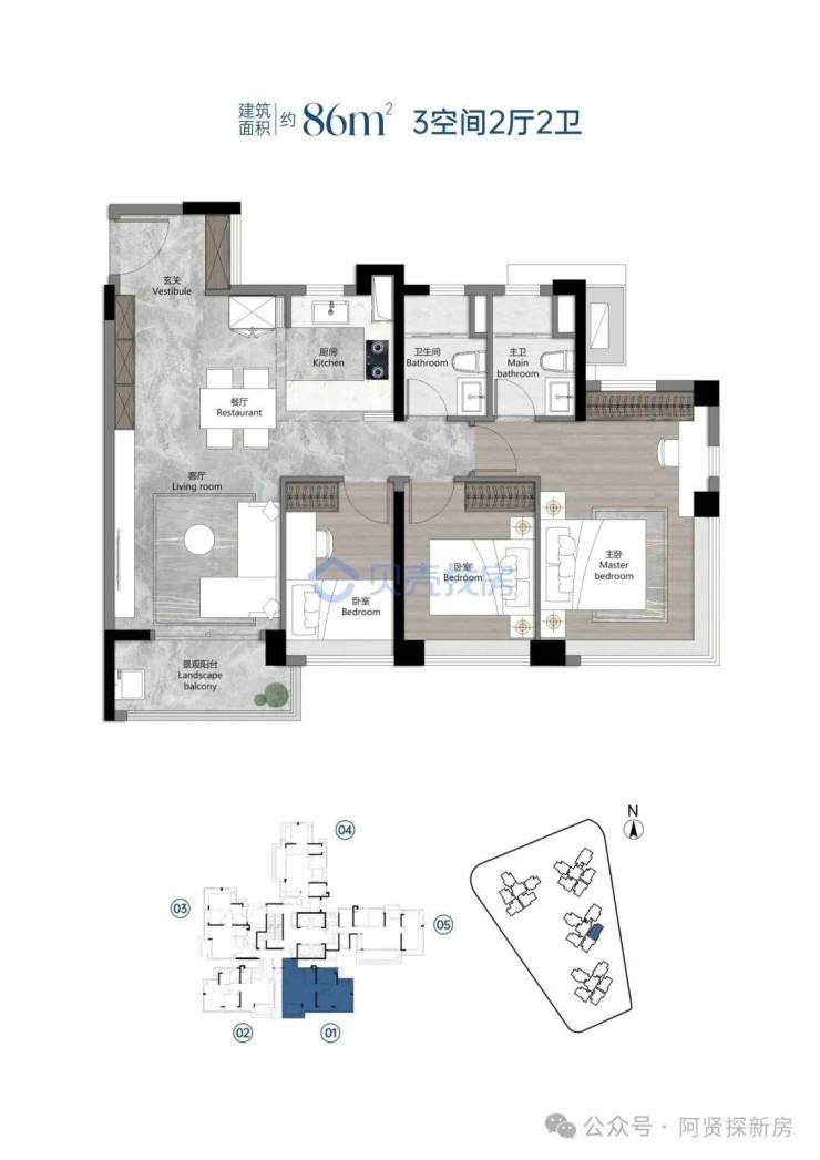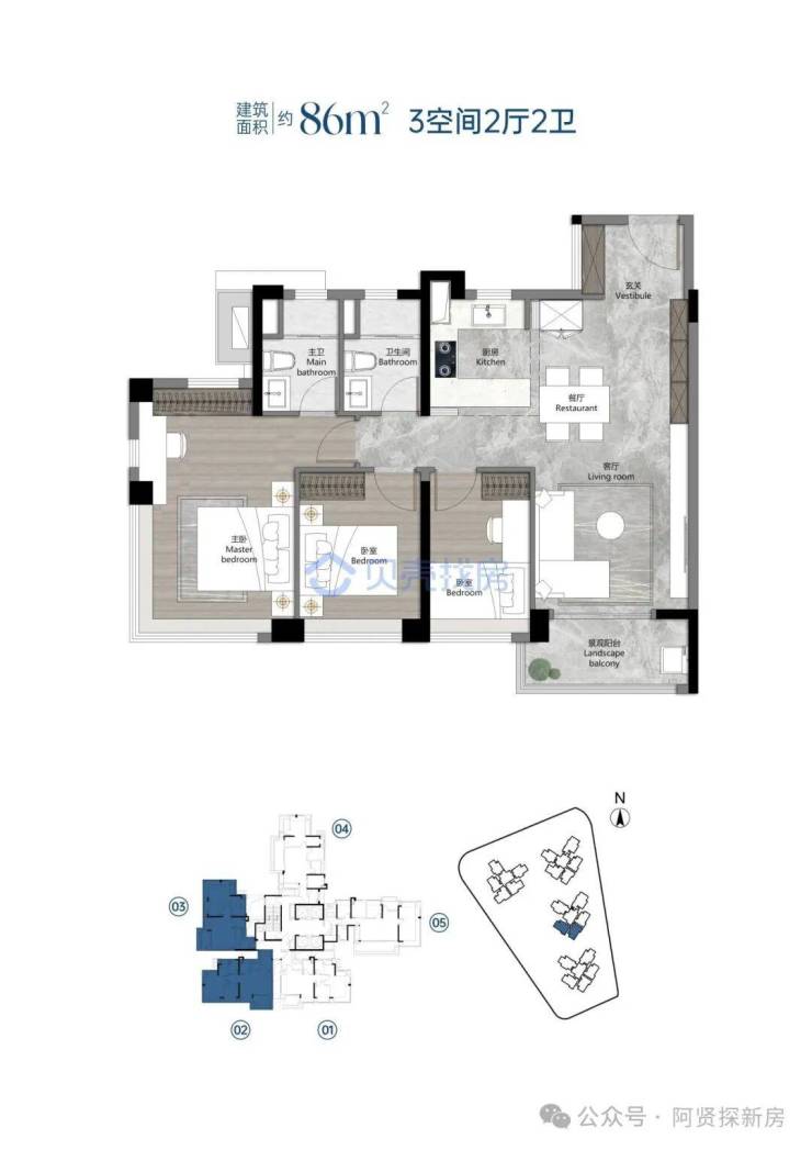 【产品打造】建面约86-122m²南向新规三至四房
