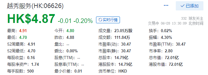 全球发售结果显示,越秀服务每股发售价为4.88港元,香港发售3696.6万股,国际发售约3.33亿股,募资18.04亿港元,净筹资约17.19亿港元。