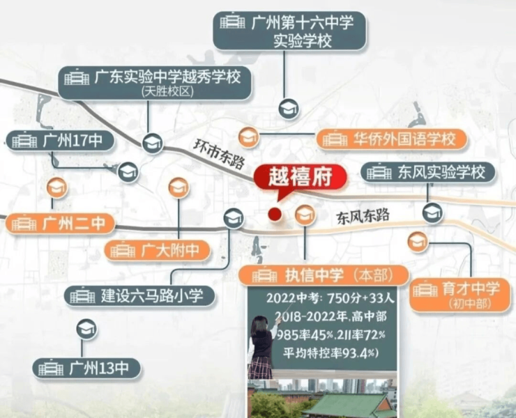 项目所属华乐街道,对口省级建设六马路小学。对口摇号8所省一级初中,包括执信中学、广大附中、第二中学、十六中学、育才中学、华侨外国语学校 。