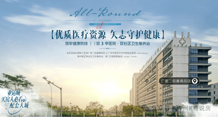 三甲级广医二院番禺院区就在社区内,中西医结合医院规划落子亚运大道。