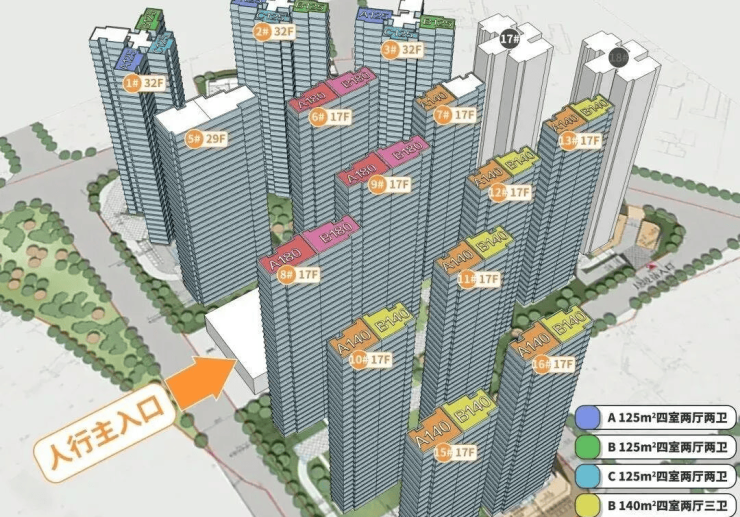 塔楼:1栋(32F,2梯4户)2栋(32F,2梯4户)3栋(32F,2梯4户)