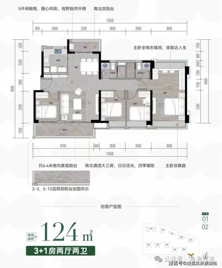 🩸【南北双阳台】约6.7米宽景阳台,约15.5米大面宽朝南,拥揽四季人生景致