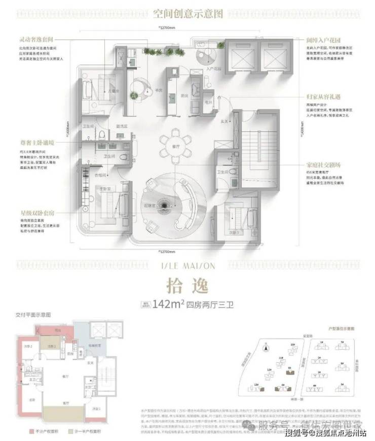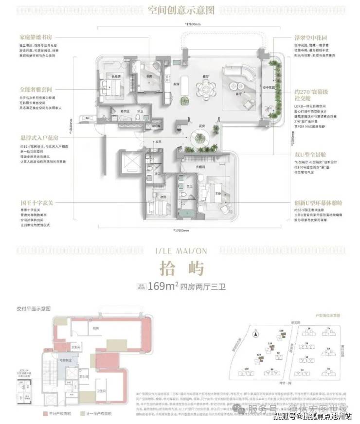 10号楼仅有户型,带独立电梯前室,客厅带空中花园,可实现四面采光,2.5开间朝南。该户型是真四代住宅,不仅多阳台,多飘窗,还有空中花园,其中,主卧、客厅三面飘窗可优化,部分阳台外还有大面积全优化空间(户型图中标注为花房),基本是送了一间房,得房率极高。