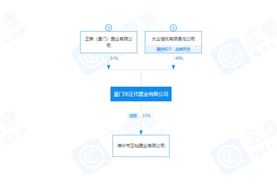 企查查披露,大业信托目前已持有厦门正代49%股权,正荣(厦门)置业有限公司(简称:“正荣厦门置业”)持有另外51%。按照产品规划,大业信托获得厦门正代部分股权后,可以通过参与项目分红来获得投资回报。