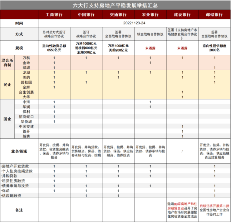 当前行业供需两侧政策已全面转向支持与呵护,供给侧从“第一支箭”银行信贷支持、“第二支箭”债券融资帮扶到“第三支箭”股权融资松绑层层突破,工具全面、力度积极,有助于行业信用端困难纾解和流动性整体优化,对于短期提振市场信心和中长期促进基本面企稳均有助益。我们认为行业将延续“政策落地-信用恢复-预期扭转-销售回升”的复苏态势,2023年基本面指标或整体表现稳健。