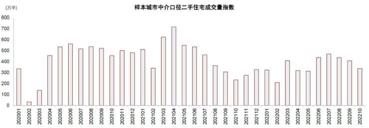 图表7:3Q22以来二手房成交量同比转正,但环比下行