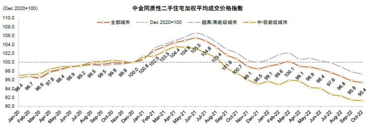 图表10:2H21二手房价快速下降,2022年来降速趋缓