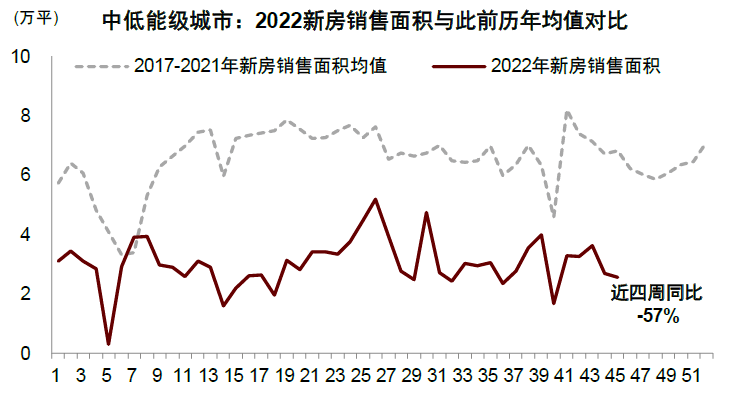 图表6:高频口径新房销售面积同比跌幅自2022年5月起有所收窄