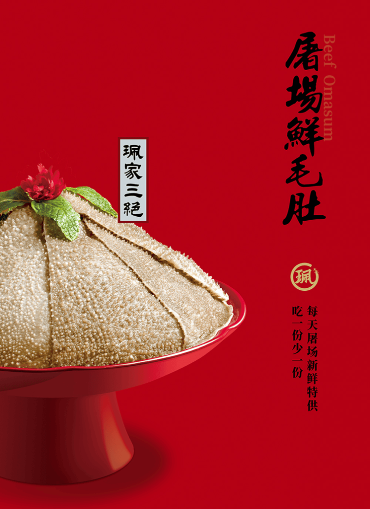 市场每日鲜送新鲜毛肚,屠场现宰现杀,与红油浸润,吃得到的脆嫩化渣。