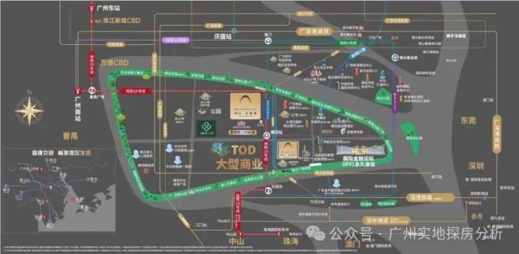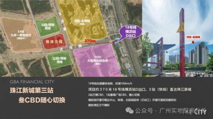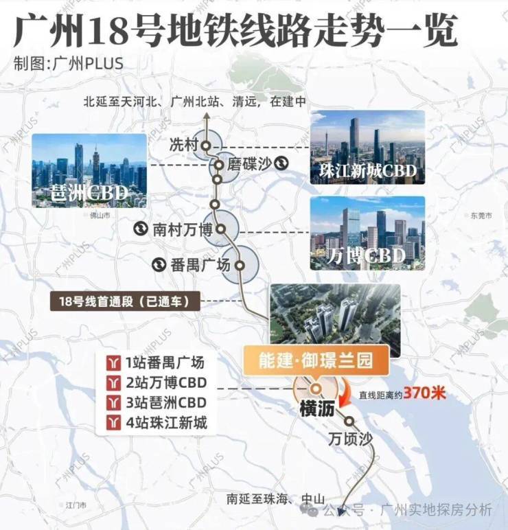 项目距离地铁18号线横沥站D出口370米,1站就可以到番禺广场,2站即到万博CBD,3站到琶洲CBD,4站就到珠江新城CBD。