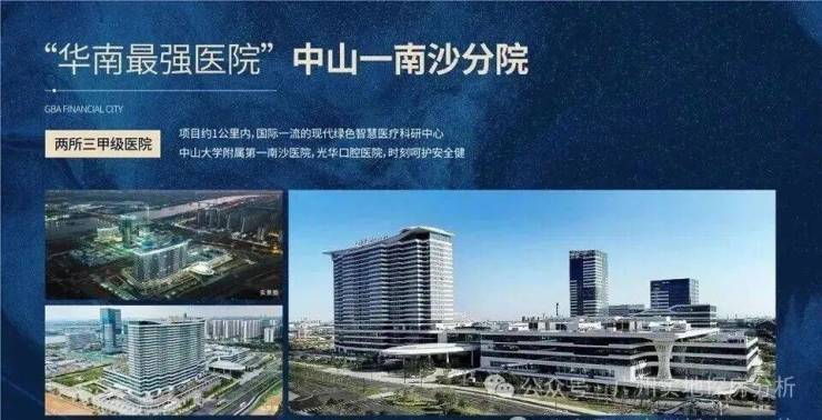 项目约1公里有两所三甲医院,一所是集海陆空一体快速救援的中山大学附属南沙医院、还有在建设的中山口腔医院,中大光华口腔医院稳步建设中。