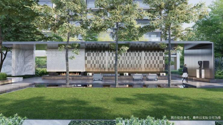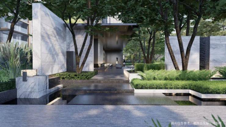 主入口庭院,酒店式落客,配以环岛中心处的水景,营造出精致、高级的豪宅氛围,让归家路充满浓浓的仪式感,归家的一刻就有尊贵的体验。