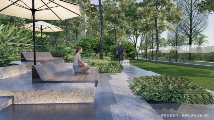 业主可在开敞的休憩廊架中闲聊、观景、阅读,享受午后的闲暇时光;也可在草坪露营,来一场家门口的微度假,在草坪上躺平放空,看着小朋友和狗狗在草坪上追逐打闹,心情会不自觉变得轻松愉悦。