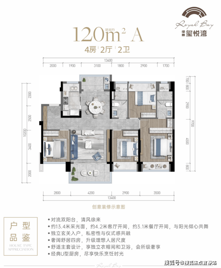 户型亮点:近 10 米采光面,百变空间,功能区随意切换