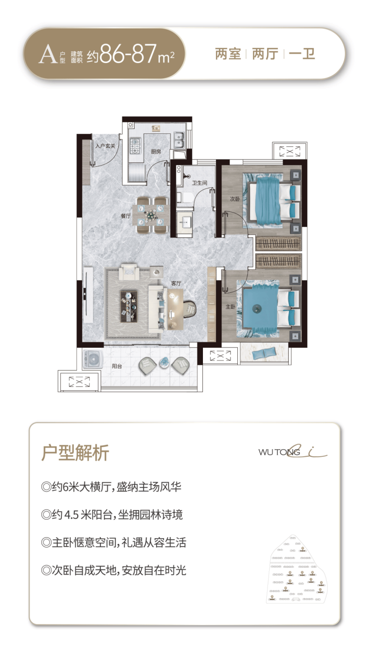 江东·梧桐里,总建筑面积约60万㎡,主要产品由32栋住宅楼、4栋独立商业、1栋幼儿园、1栋老年日间照料中心组成。匠心筑造建筑面积约86-119㎡两至四房,全新进阶户型,装修交付,重新定义当代家庭生活新范式。