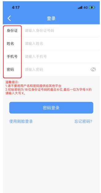 2.输入“身份证号”“姓名”“手机号”“密码”,登录系统。