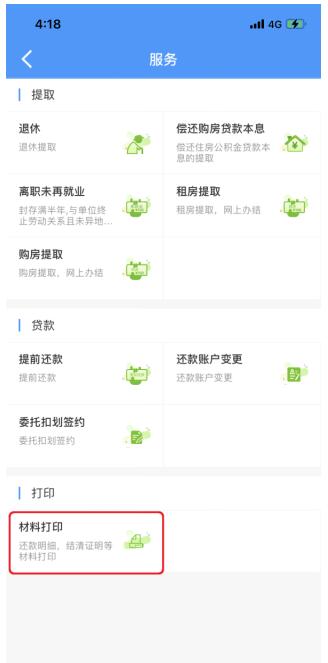 3.在“我的公积金”栏目,点击“业务单据打印”。