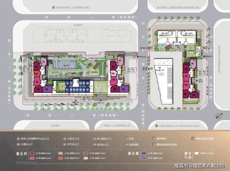 住宅1栋一/三单元47层 住宅2栋一单元42层 公寓29层