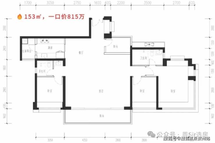 约153㎡3房2卫:总价815万