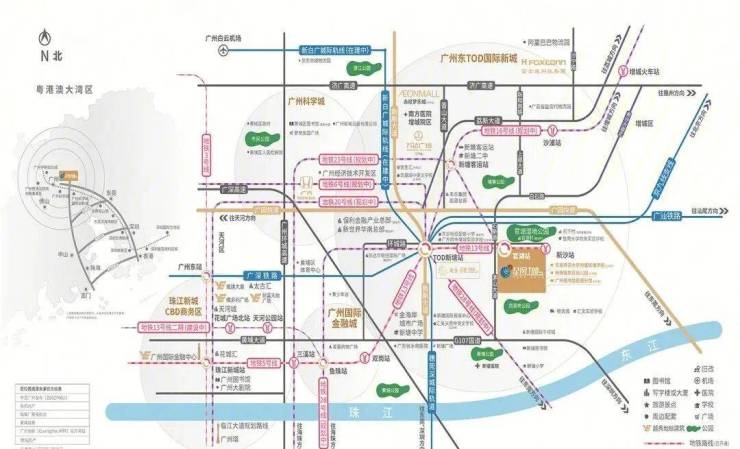 地铁——广州地铁13号线和23号线(规划中)双地铁交汇;约300米即达官湖站,13号线二期无需换乘直接串联5大中心商务区(环市东、珠江新城、金融城、第二CBD鱼珠港、新塘TOD),直达珠江新城;以及一轻轨多维轨道(穗深城轨、广汕高铁等)迅捷交通;