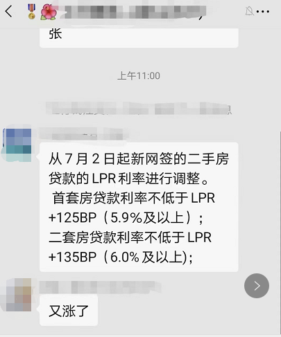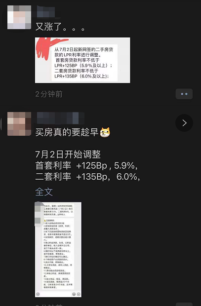 紧接着,各个购房群、贷款群、客户经理等纷纷通知,房贷利率上涨,首套5.9%,二套6%。