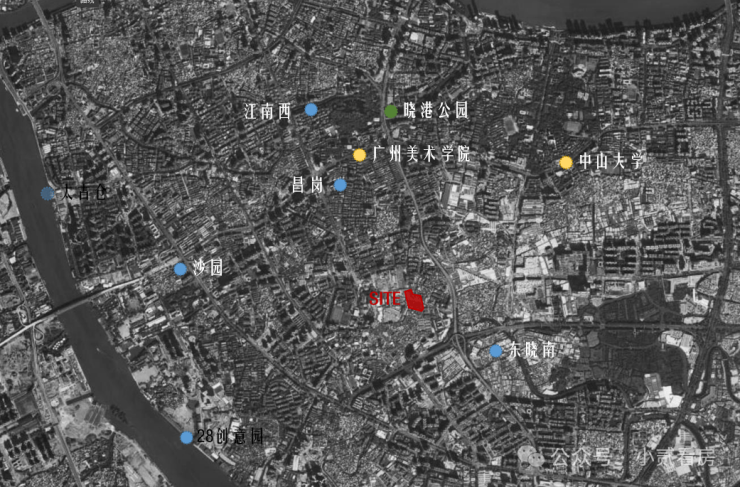 此外,广州美术学院学生工作室也扎根于此,使得艺术和商业的氛围结合紧密。但地块所处的江泰路有着大量社区群楼,虽生活氛围浓厚,但城市界面相对老旧。