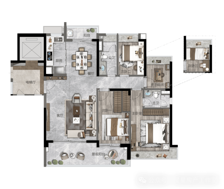 功能配套:规划有 “泛会所式” 架空层,提供书吧阅读、艺术交流、儿童乐园、运动健身、会客洽谈等五大全龄配套。