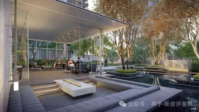 园区的景观灵感,来自于曼谷豪宅EssAsoke,以双中庭为核,由轩敞的风雨连廊,串联起悬浮会客厅、叠水树景、24小时封闭式轻氧健身仓等社交空间,带来沉浸式微度假体验。
