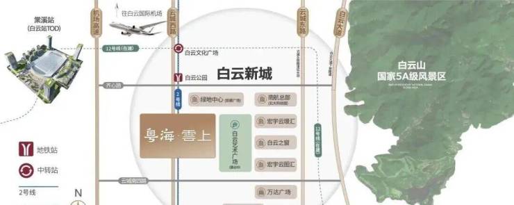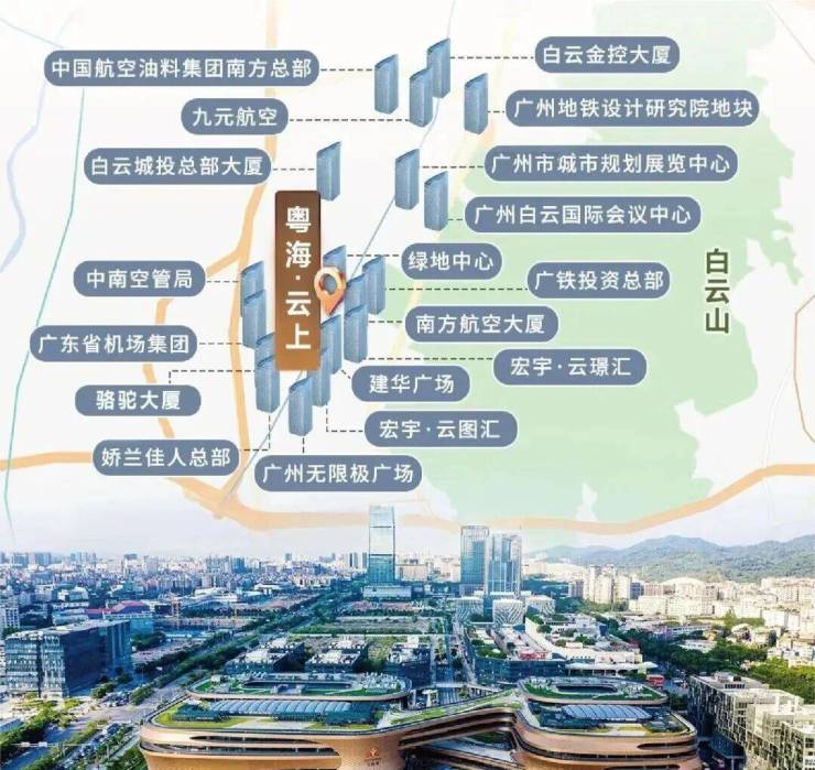 ✅ 项目与白云山直线距离仅1公里,推窗即览云山叠翠,实现“城在山中,山在城中”的居住理想