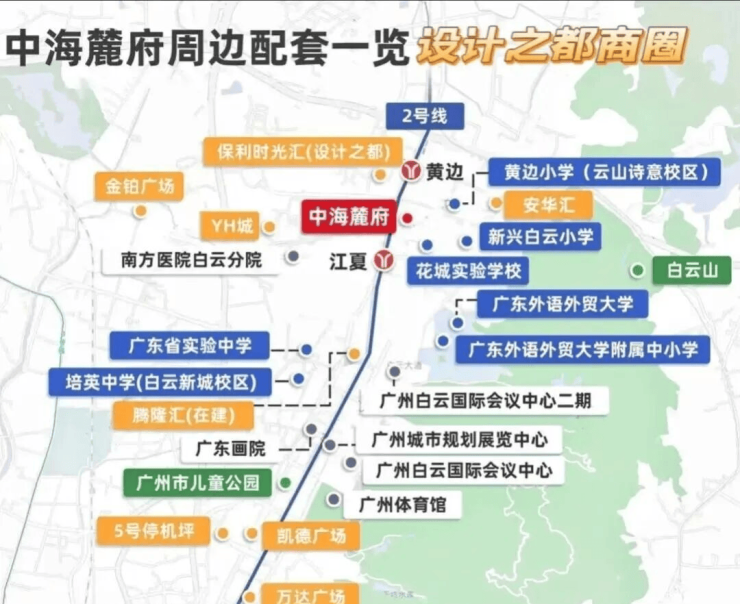 项目旁边就是设计之都的白云时光汇商场,周边一公里内还有安华汇商场和白云汇商场,白云新城的万达广场和凯德广场也不到三公里,周边的商业配套非常成熟。5公里范围内还汇聚了金铂广场、凯德广场、万达广场等大型商业体。