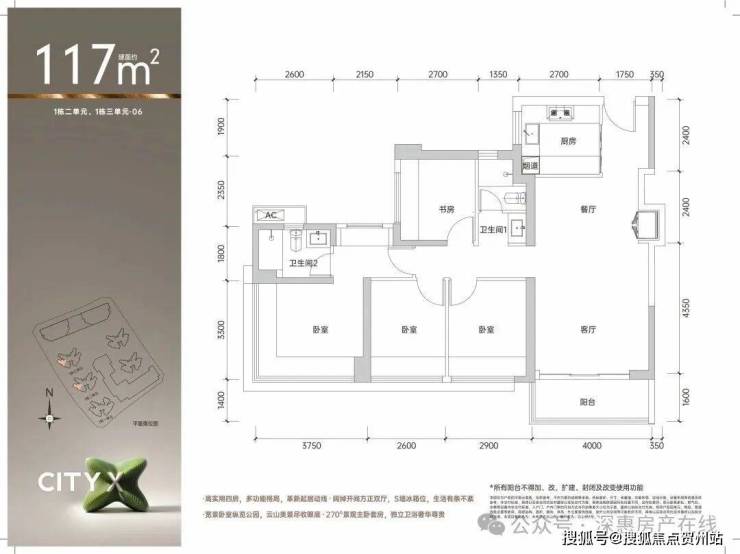 117㎡的4房2卫,折后总价509-520万/套,折后单价4.34-4.44万/㎡。