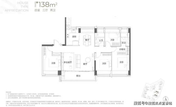 138㎡的4房2厅2卫设计的是竖厅南北通透格局,专梯入户,客厅6.1米开间,LDKB一体化,全屋飘窗,4个卧室分别做到了3.9米/3.25米/2.9米/2.8米的宽度,主卧加1个次卧270°全景飘窗,客厅出6.1米长的大阳台,U型厨房,得房率约85-95%(包含赠送),阳台主朝西南向。