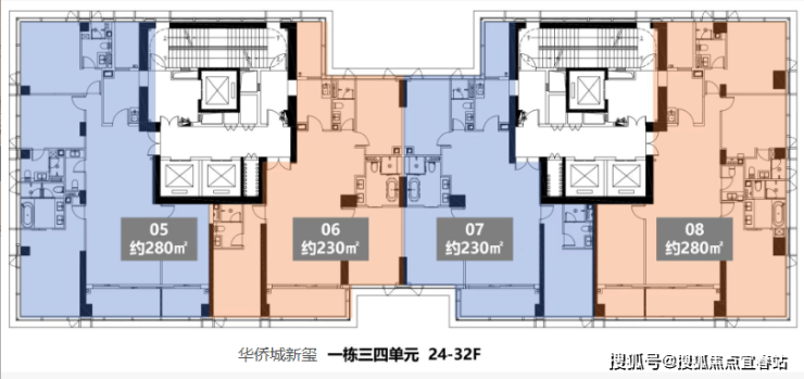 华侨城新玺T1栋三四单元 24-32F 230-280㎡3+1房2厅4卫
