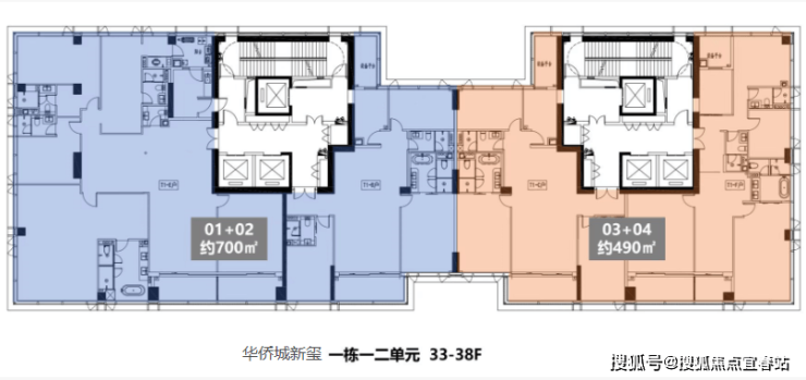 华侨城新玺T1栋一、二单元 33-38F 490㎡5-1房3厅5卫, 700㎡6+1房3厅6卫