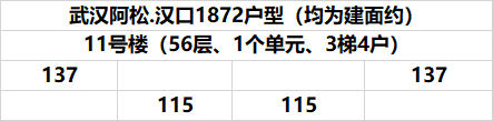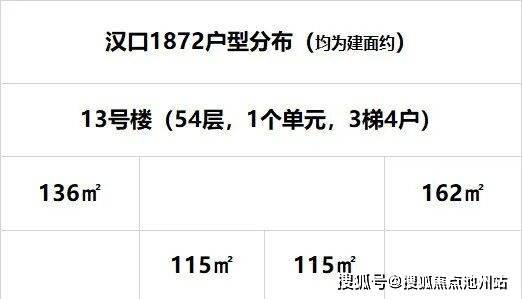 11号楼共56层,1个单元,3梯4户;12号楼共48层,1个单元,3梯4户;13号楼共54层,1个单元,3梯4户。