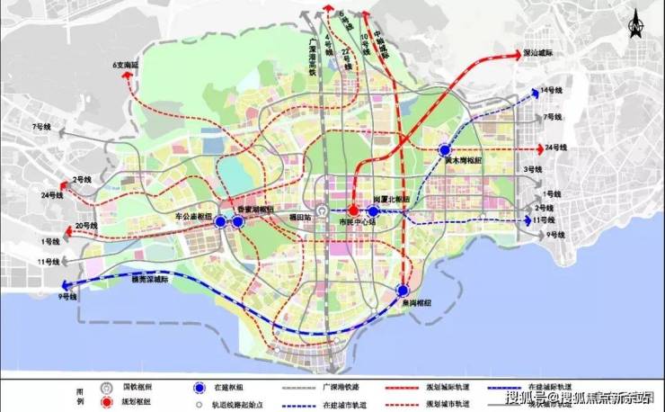 →三轨交汇:地铁9号/4号/22号线(在建中)三轨交汇,直距约300米上梅林站;22号线开通后,直抵香蜜湖