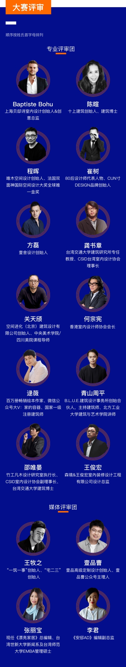 除了吸引到中国大量年轻室内设计师的参与,「营造家奖」对于设计师界的前辈和大咖同样魅力十足。从法国双面神国际空间设计大奖全球少有金奖得主程晖、80后设计师代表人物崔树,到近年来设计界炙手可热的设计师青山周平、央美/川美教授关天颀、百万册畅销绘本作家逯薇等等等等,「营造家奖」的评审队伍越来越壮大,也越来越国际化。
