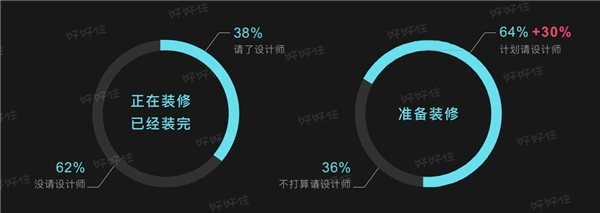 上图为「好好住家居研究院」出品的《2019中国城市家庭居住报告》内容截图,数据分布显示越来越多的装修用户愿意为设计付费。
