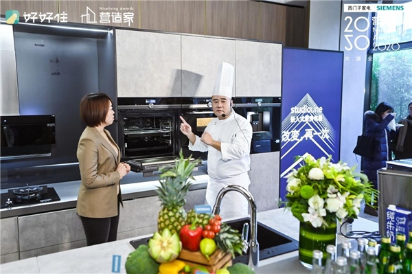 上图为2020「营造家奖」华北赛区评审会答辩现场,「西门子家电」展区内,西门子员工为现场设计师介绍「西门子家电」产品。