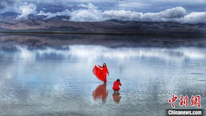 图为游客在茶卡盐湖拍照。 孙睿 摄