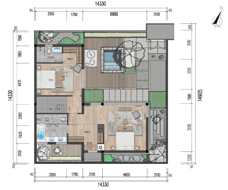 🌴【独栋小院:三室两厅四卫 建面约97㎡】