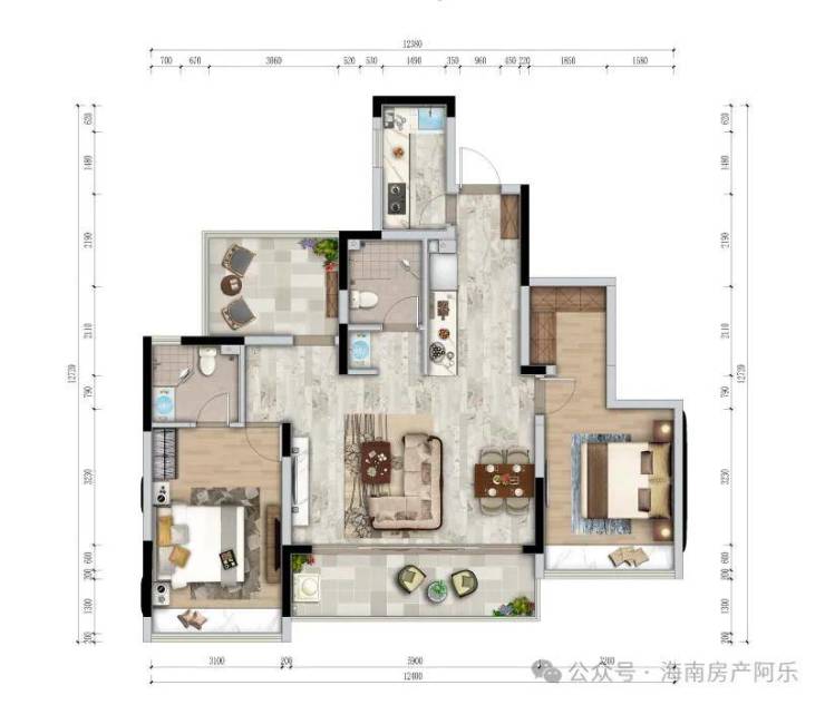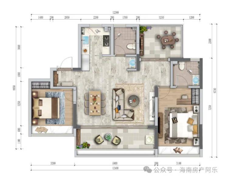 【阔境美宅:三室两厅两卫 建面约103-105㎡】
