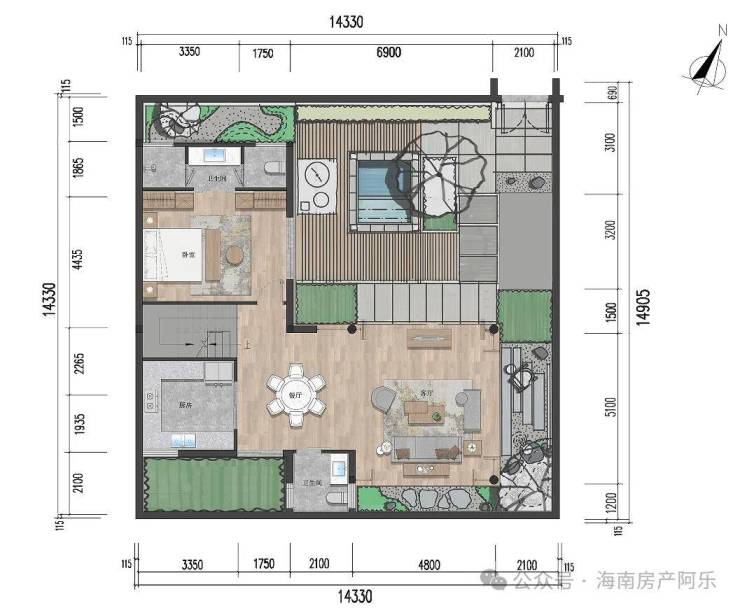 【独栋小院:三室两厅四卫 建面约97㎡】
