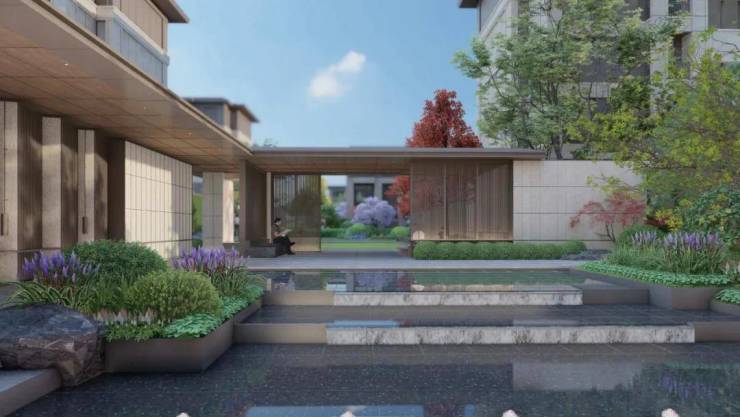 第一重,酒店式落客门楼/第二重,精致中央水庭/第三重,开放式社区会客厅/第四重,仪式感中央公园/第五重,联排别院深巷、洋房花园雅集/第六重,联排私家院落、洋房尊享门厅/第七重,洋房一层大堂/第八重,洋房入户大堂。