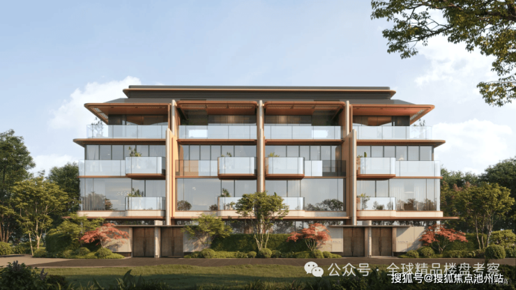联排立面通过“虚实对比”,实体墙部分采用仿砖涂料,虚体部分为玻璃幕墙,既保证私密性又提升通透感。联排产品采用“双坡屋顶+金属格栅”设计,屋顶坡度模拟江南传统民居,格栅则过滤强光,形成斑驳的光影效果。
