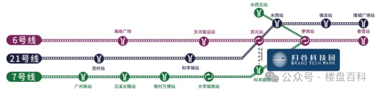 地铁——距离广州地铁6号线与地铁21号线交汇站苏元站约700米,地铁7号线科丰路站边上,三轨道交通交汇,真正的地铁上盖;