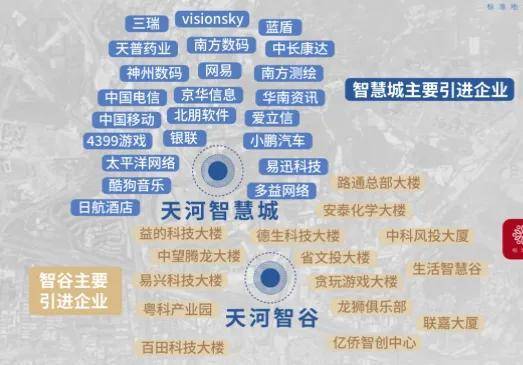 天河智慧城核心区,这里汇聚有网易总部、酷狗、南方测绘、小鹏汽车、极飞科技等企业大咖,此外德生科技、北明软件、极飞科技等新兴的高科技企业也纷纷进驻于此。